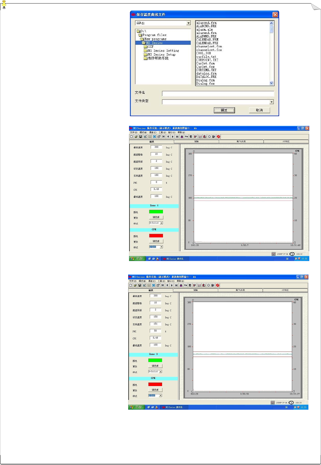 劲拓电子设备有限公司 第 22 页 共 66 页 NS 系列无铅回流焊机用户手册 (A1.0) 7.2.3.7.3 “下一个”选项: 从当前通道跳到下一个通道。如 在 “通道曲线图” 窗口,当前通道是第 一个通道,单击此选项,将会显示如右 图的第二通道画面。 7.2.3.7.4 “最后一个”选项: 从当前通道跳到最后一个通道。 如在 “通道曲线图” 窗口,当前通道是 第五个通道,单击此选项,将会显示如 右图的第 16 通道画面。 7.2…