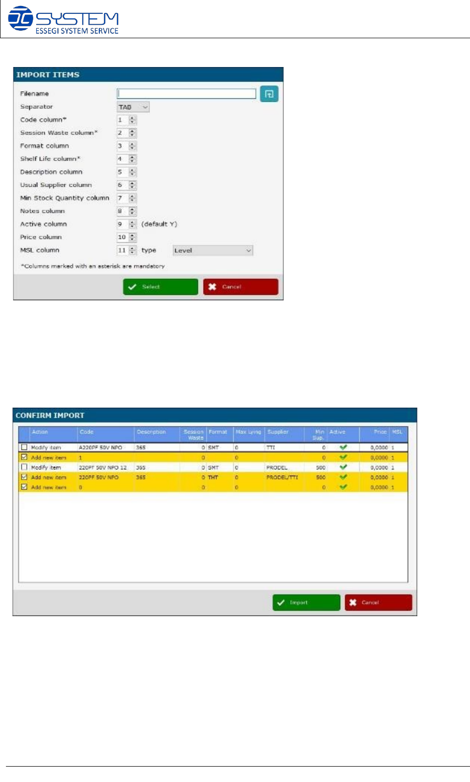Allows to import or export of the ITEM list. By pushing Import the following window will open:
