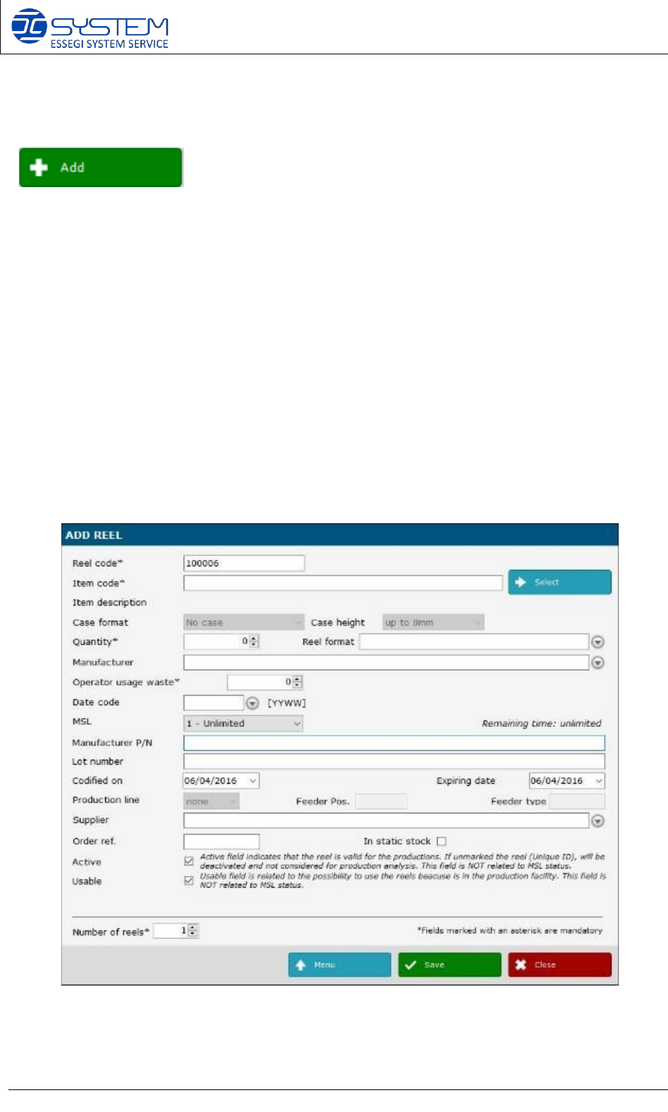 N° of reels: indicates the number of reels with the same P/N you are creating. Example: if you set 3, the