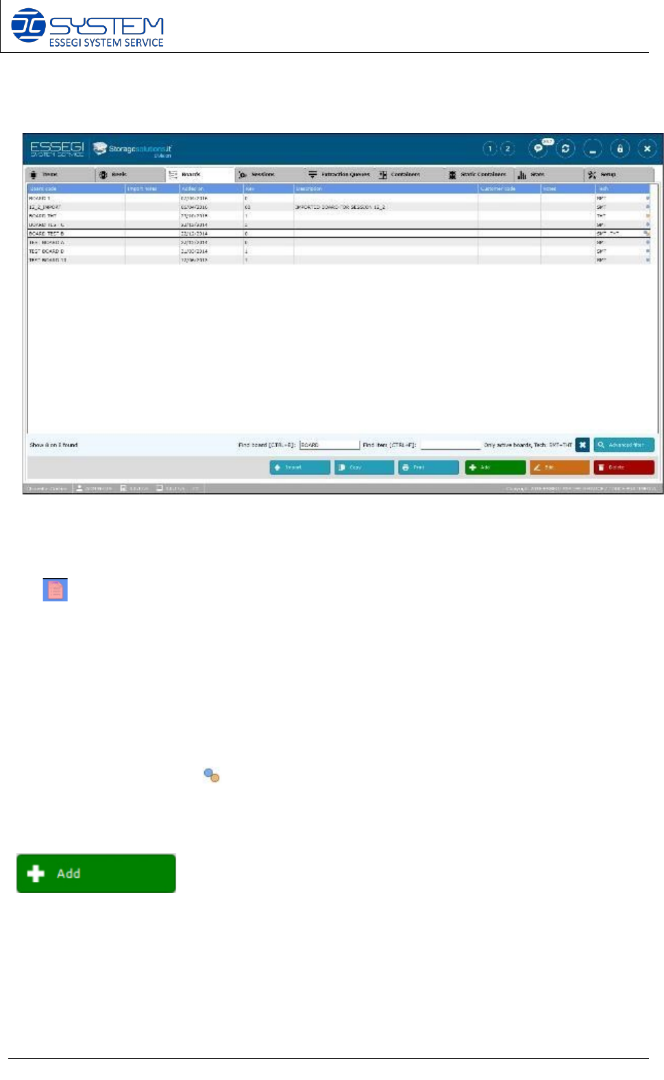 On this window is displayed the list of printed circuit boards (BOM) saved inside the data base.