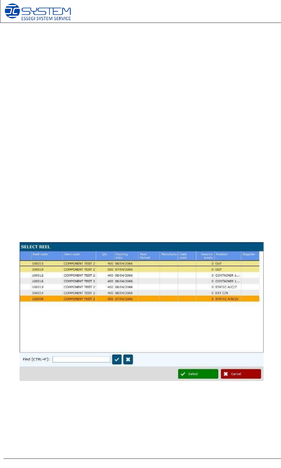 In this window you will visualize all reels with the same P/N. Line underlined in orange is that