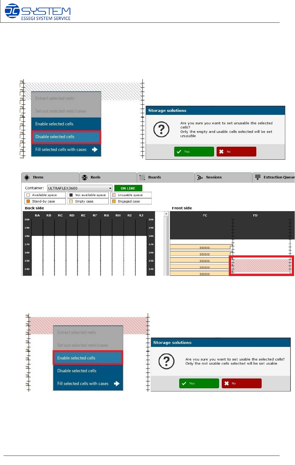 An operator can also disable a specific cell: the machine will not use the cell because it will be