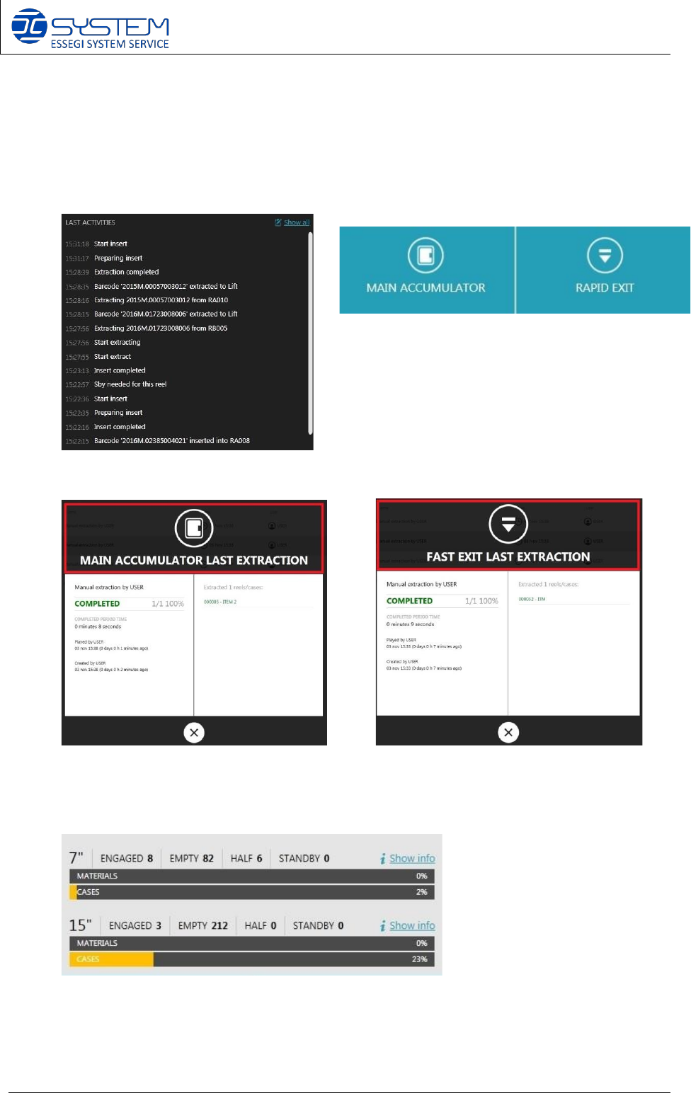 Software 3.1 rev_0 1 Edition 06/20 16 - Reproduction forbidden a Page 55 Storage Solut ions Soft ware Operating Manual ENGAGED CASES are cases completely busy (there are two reels or 1 tray). EMPTY CASES are cases withou…