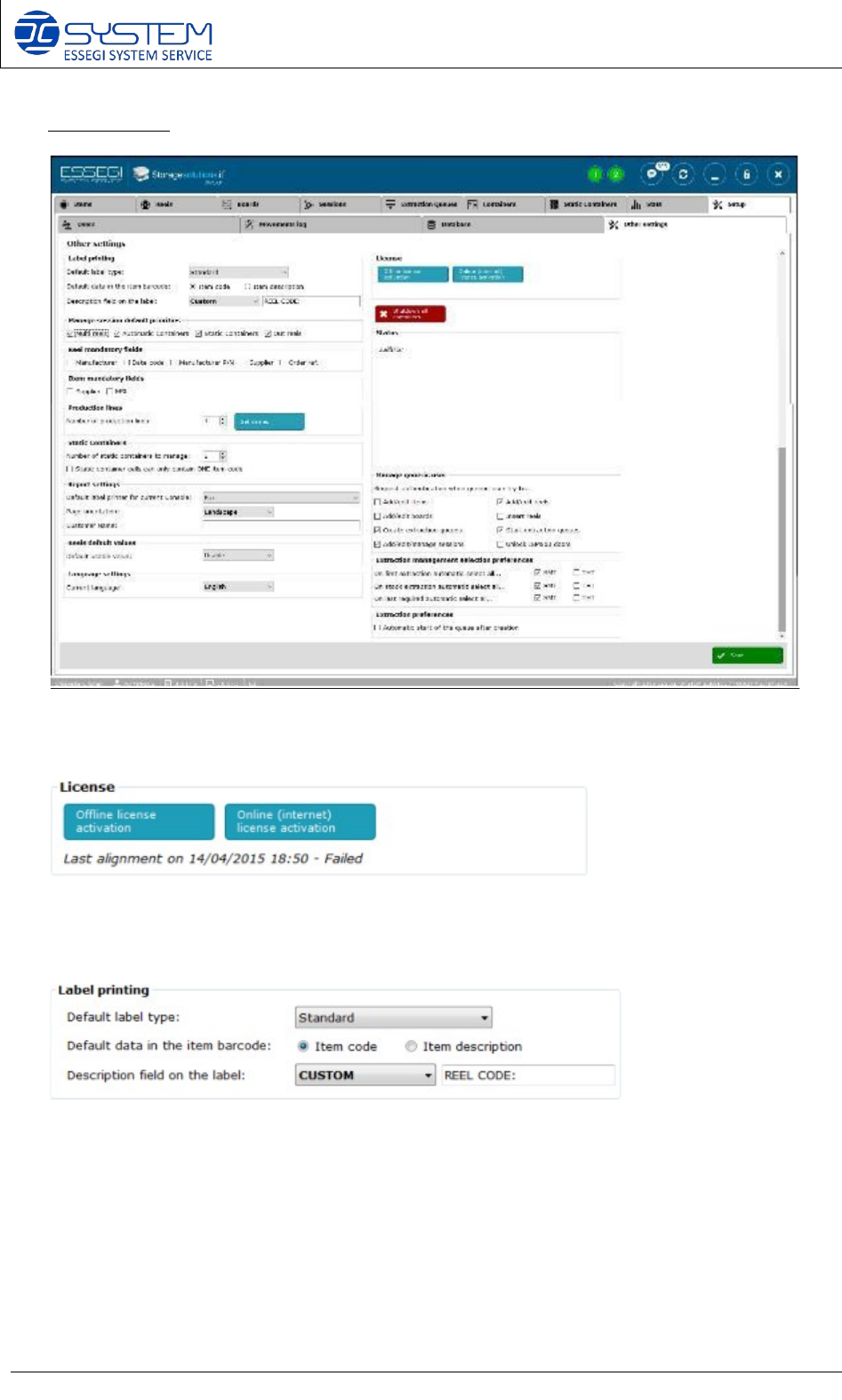 Software 3.1 rev_0 1 Edition 06/20 16 - Reproduction forbidden a Page 63 Storage Solut ions Soft ware Operating Manual 4) Other se ttin gs It allows t o m ake the of fline (no i ntern et connec tion) a nd on line licens …