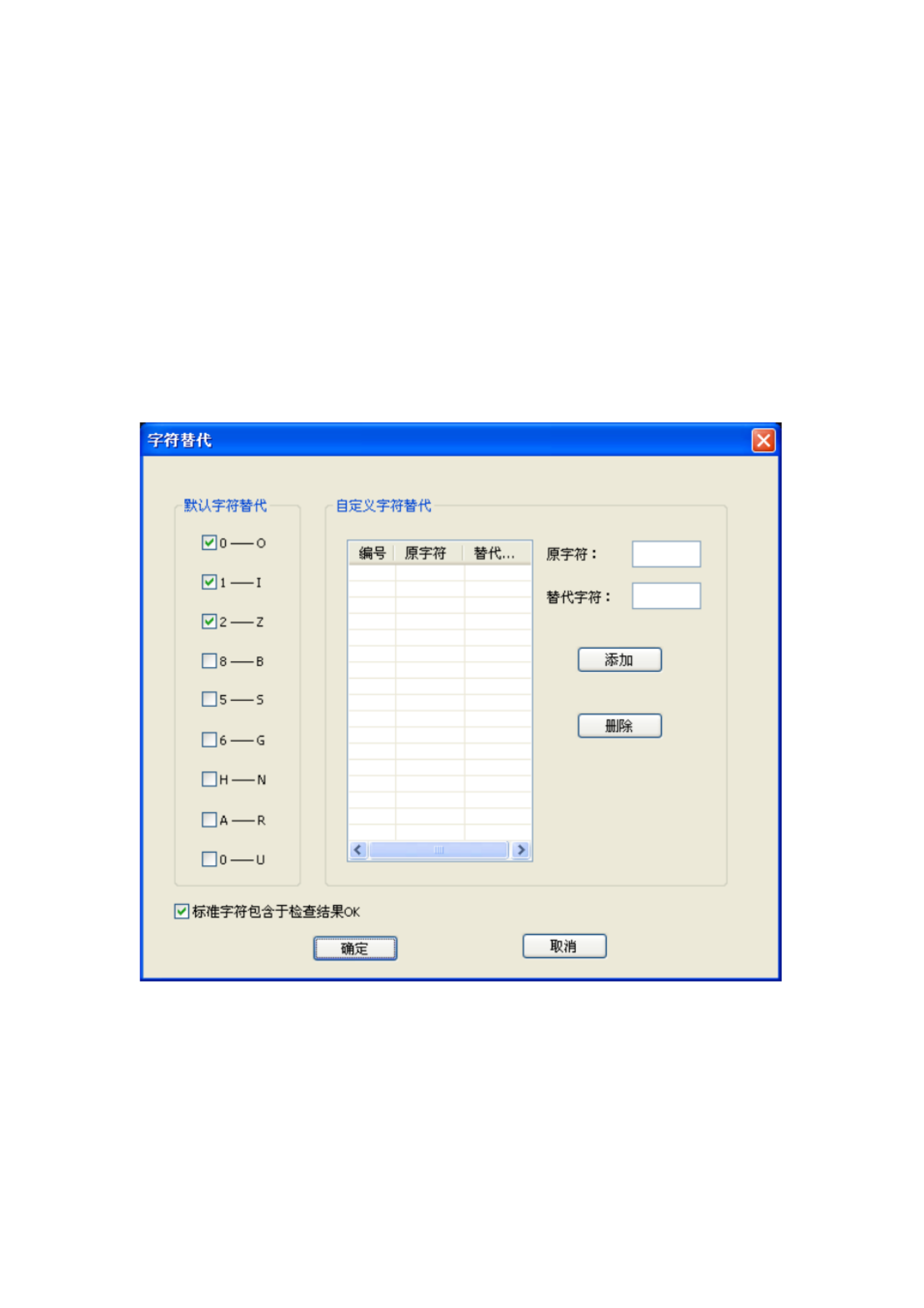 替代字符设定:字符 0(O),1(I),2(Z),8(B)....