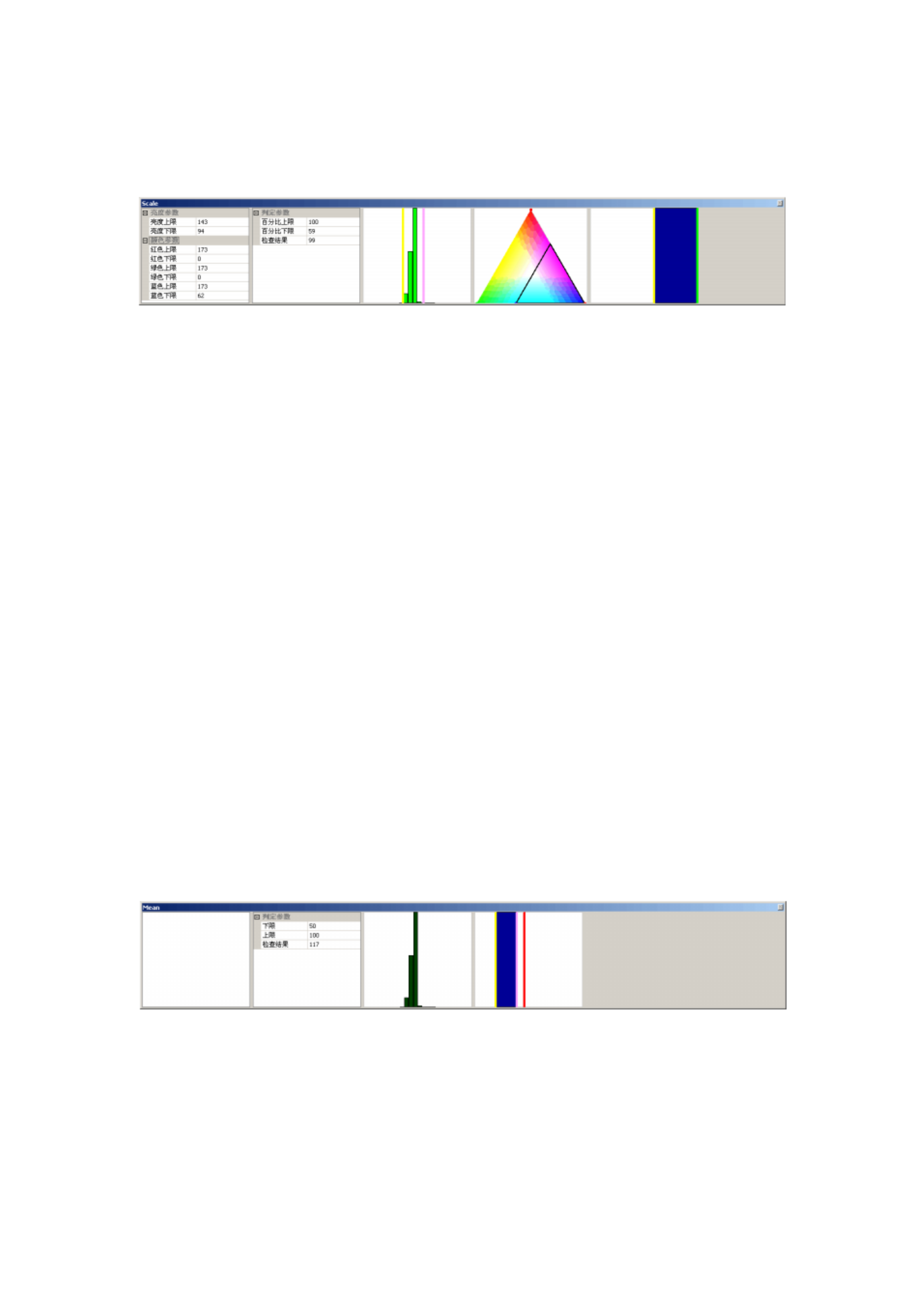 a) 上限:亮度最大值( 0~255 ) b) 下限:亮度最小值( 0~255 ) 计算方法: 计算检查窗口内部像素亮度的平均值。 结果符合判定参数的范围时, 判定结果为 OK 。 反之, 判定结果为 NG 。 Max 计算参数: a) X 邻域:设定 X 方向做均值运算的像素个数 b) Y 邻域:设定 Y 方向做均值运算的像素个数 判定参数: a) 上限:亮度最大值( 0~255 ) b) 下限:亮度最小值( 0~255 ) 计算方法…