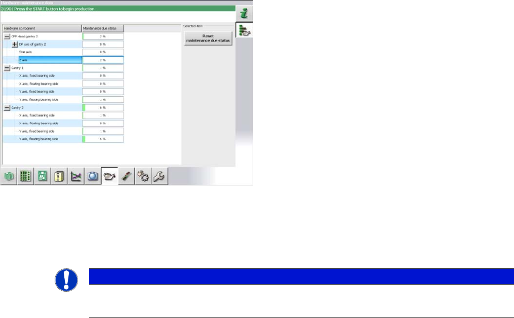 维护状态可通过贴片周期数、温度和工作小时数进行计算。 维护状态显示为进度条 (0 – 100 %)。