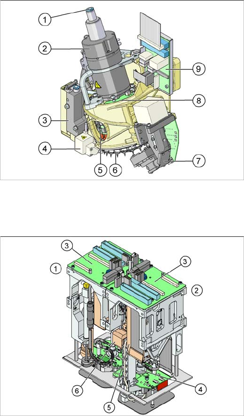 组件概述 C&P6/12 贴片头概述 组件的序列号 20 预防性维护 SIPLACE SX1/SX2 V2 2.2 C&P6/12 贴片头概述 2.3 CPP 贴片头概述 1. 中间分配器,数字 (在机盖下) 2. 星形轴马达 3. Z 轴马达 4. 步进马达 5. 元件照相机 1. 星型轴 2. 段位器 3. 前板 4. 消声器 5. Z 轴驱动装置的线性导轨 6. 元件传感器 (在贴片头的下侧)