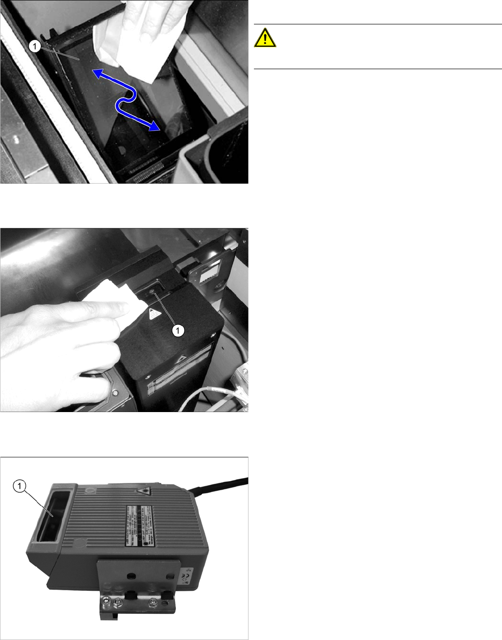 ► 用浸有乙醇的无纺布清洁 Y 轴的增量光栅标尺 (1)。