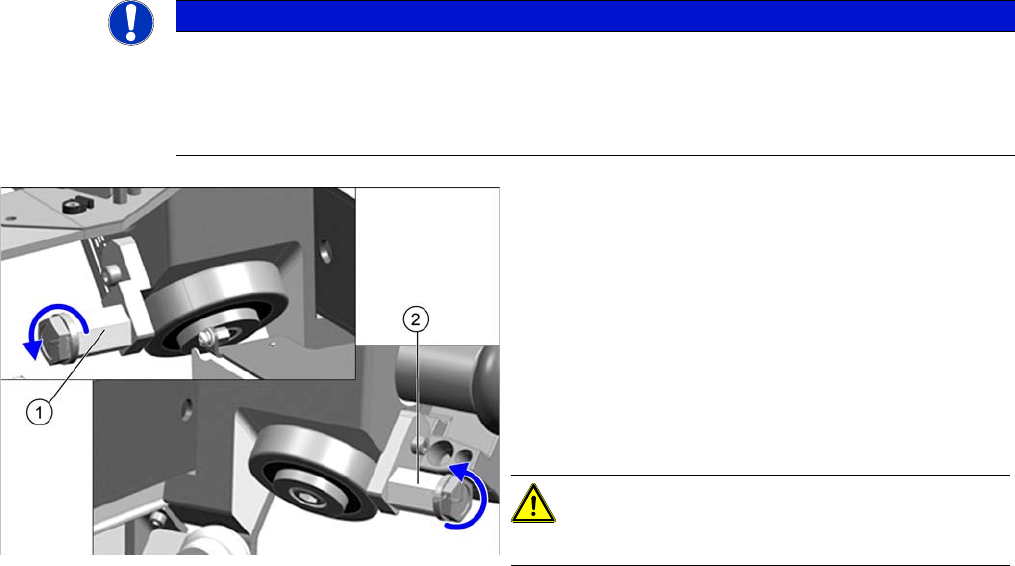 ► 拧松传送导轨侧面夹持器。 (参见服务手册)