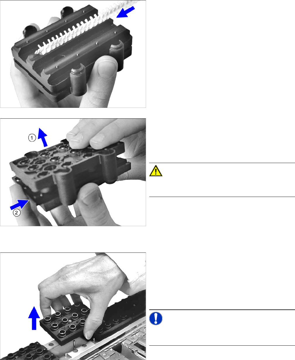 ► 将塑料刷的导引器放入清洁盒内。