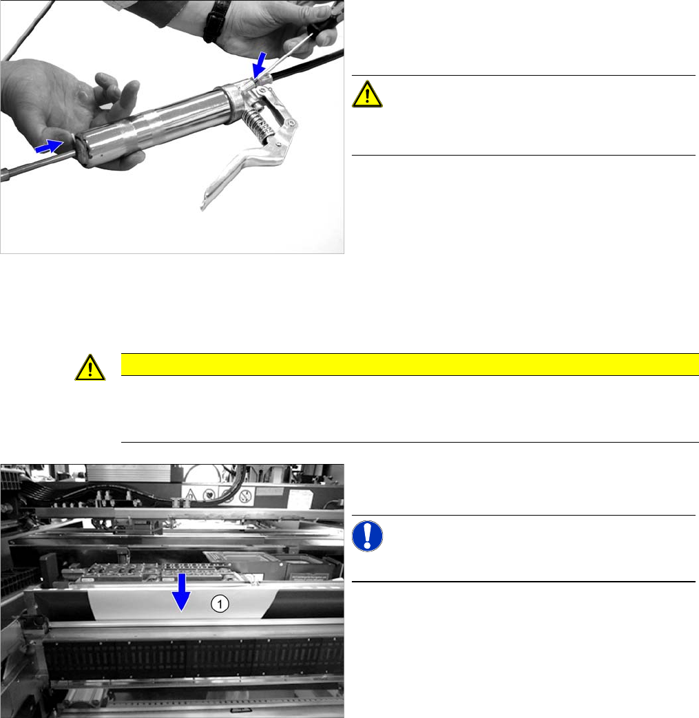 ► 为 “ 适用于 Y 轴的带软管的黄油枪 ”(涂覆的量约为 0.4 克)[00374563-xx] 填充 Klüberplex BEM 34-