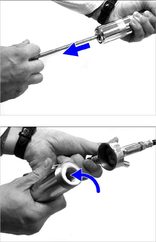 ► 拧松黄油枪后面的锁定装置。弹力将柱塞向前移。