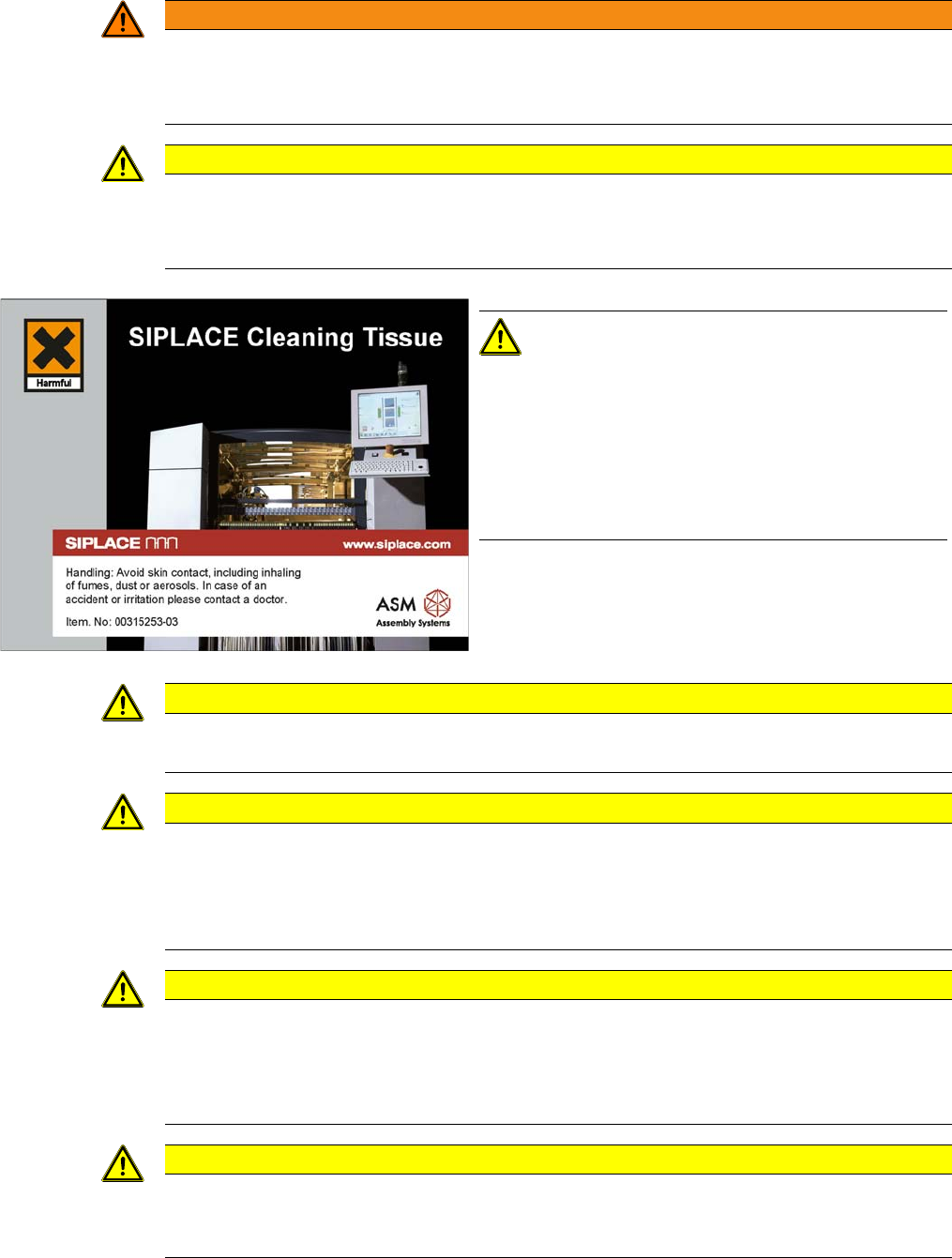 ▪ 始终固定贴片机,避免未经授权的重新激活。如果未遵守这些说明,则可能会接触带电部件,从而