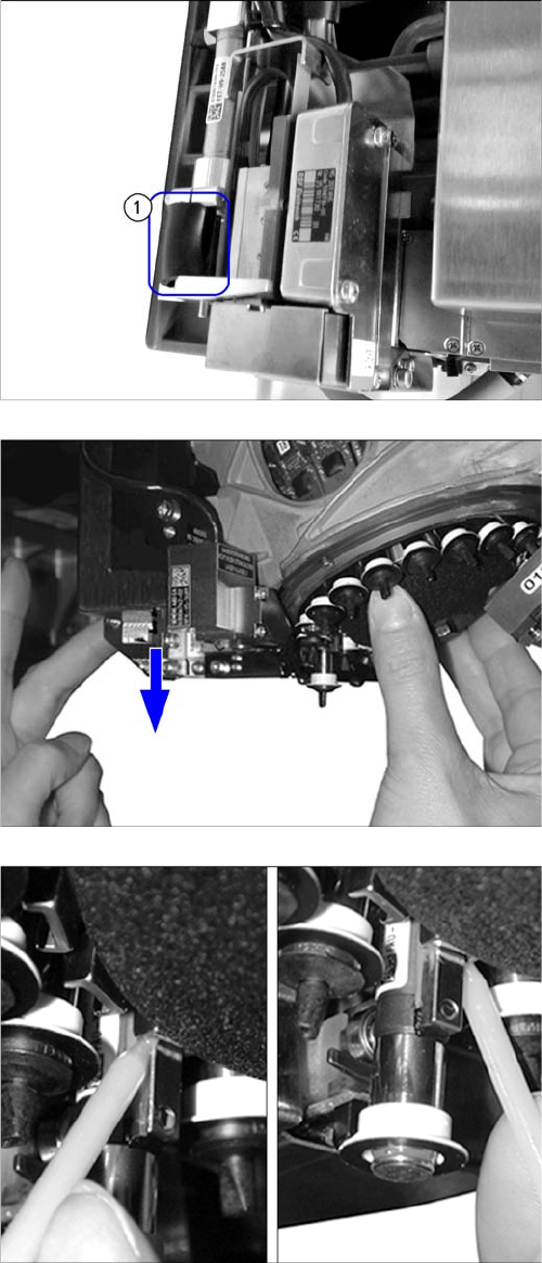 ► 取出 Z 轴与驱动装置之间的黑色橡胶软管。