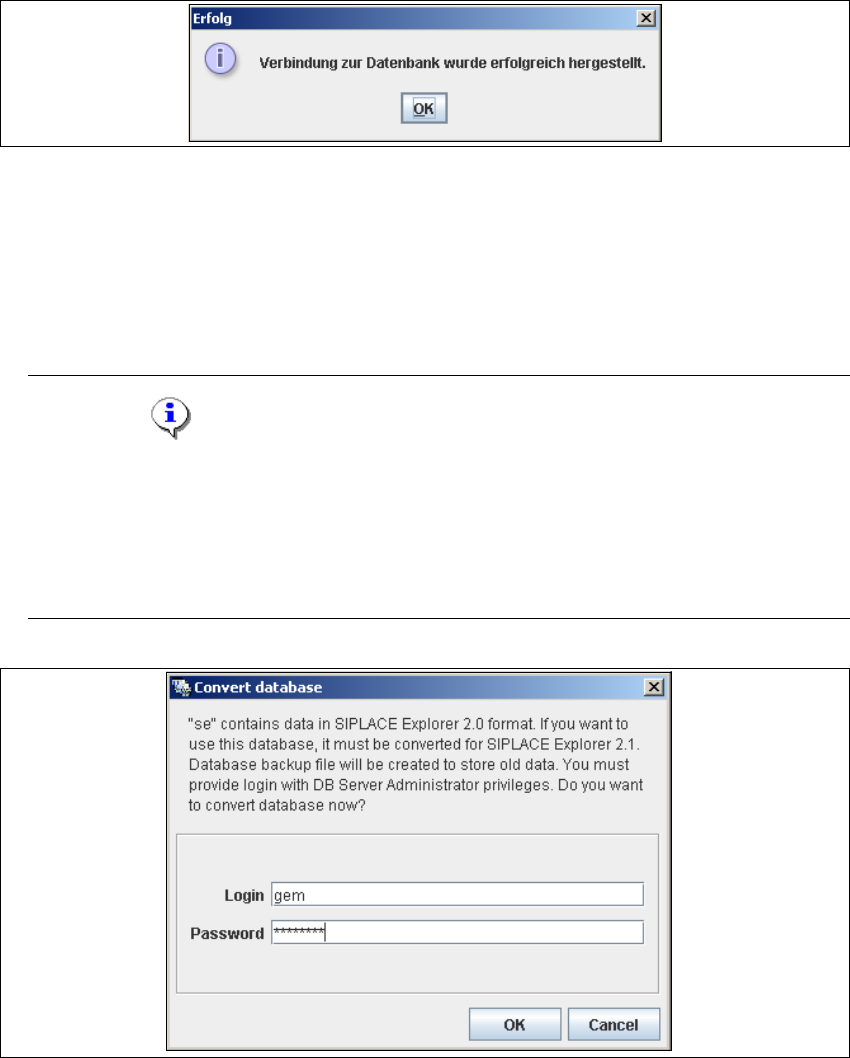 Konvertierung der Datenbank von V2.0 nach V2.1. Bei Konvertierung der Datenbank von