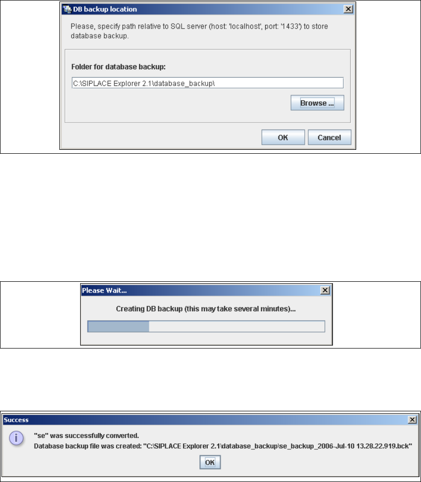 → Das Dialogfenster DB backup location öffnet sich. Dieses Dialogfenster öffnet sich nur bei