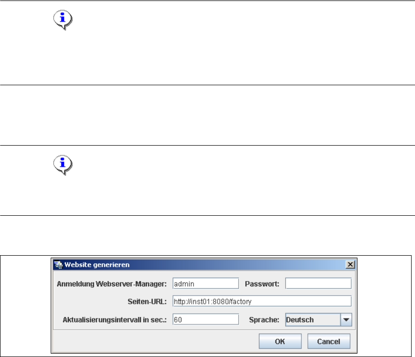 Zur Generierung einer Werks-Website benötigen Sie Webserver-Manager-Rechte (Tomcat-