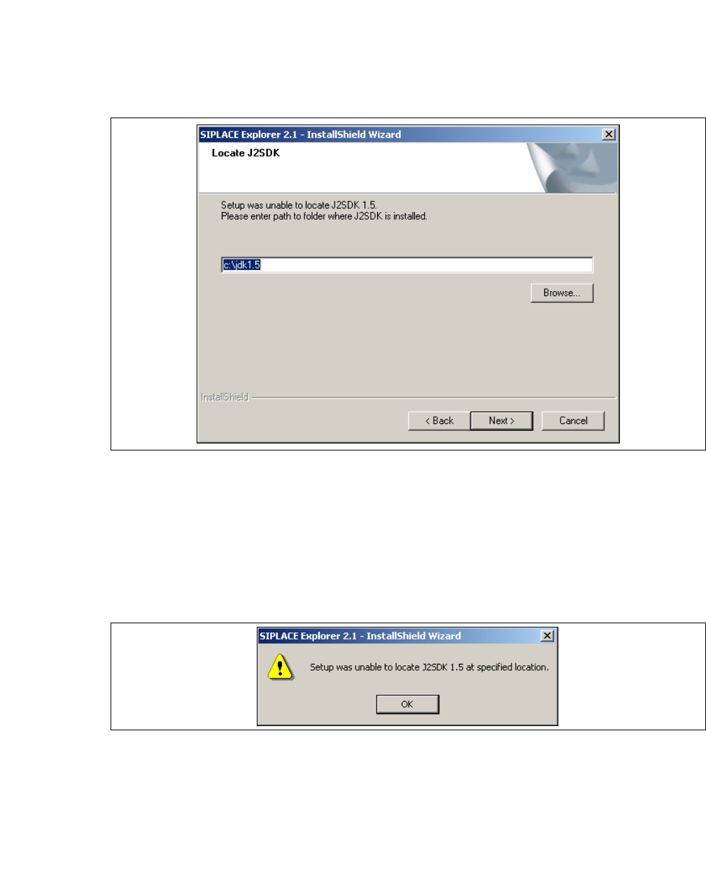 Abb. 3 - 14 SIPLACE Explorer Setup - J2SE kann nicht gefunden werden