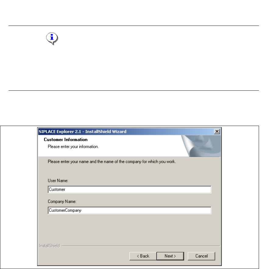 Abb. 3 - 15 SIPLACE Explorer setup - Kundeninformation angeben