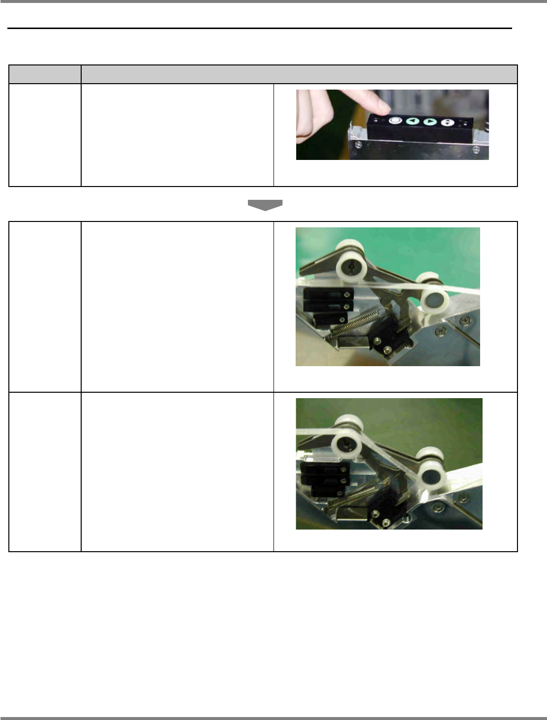 Intelligent Tape Feeder 操作手册 7.1 关于故障 INTF-C-OME07-A01-12 Page 7-3 7.1.2 封盖带的卷绕不良时 项目 詳細 故障现象 无法进行封盖带的牵引动作。 原因 A 在封盖带的导入轮齿上未正确 安装封盖 带或是封盖带出现断裂。 对策 A 重新安装封盖带。 ∗ 频繁出现封盖带断裂时, 请参照 ( 7.1.6 封盖带断裂 ) 。 INTF-067P INTF-067P