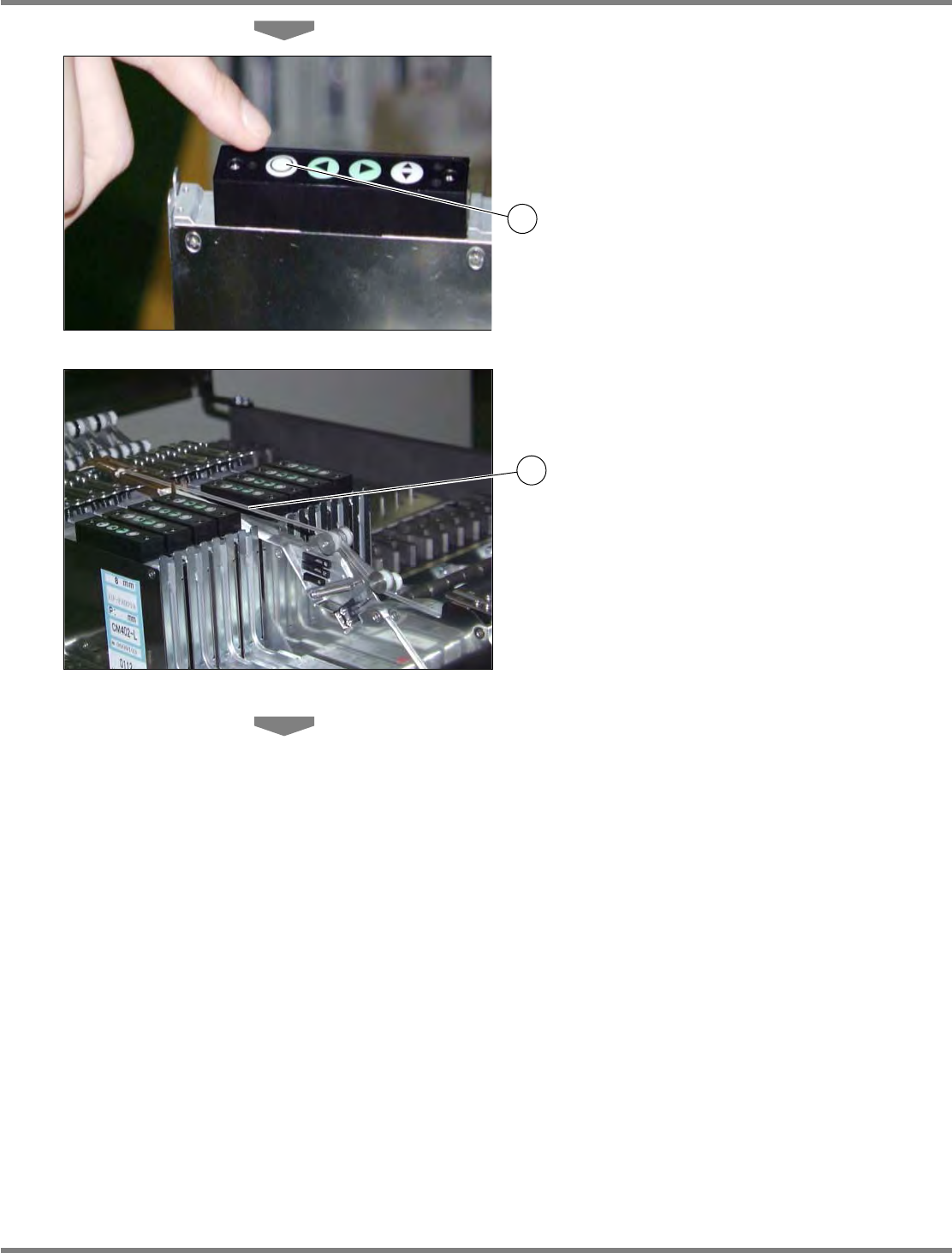 Intelligent Tape Feeder 操作手册 2.2 编带的设置 Page 2-16 INTF-C-OMB02-A01-12 14. 按下编带搬送 ( 正转 ) 用的按钮 直到第 一个芯片出来。 INTF-273P 供料器前方 INTF-088P 1