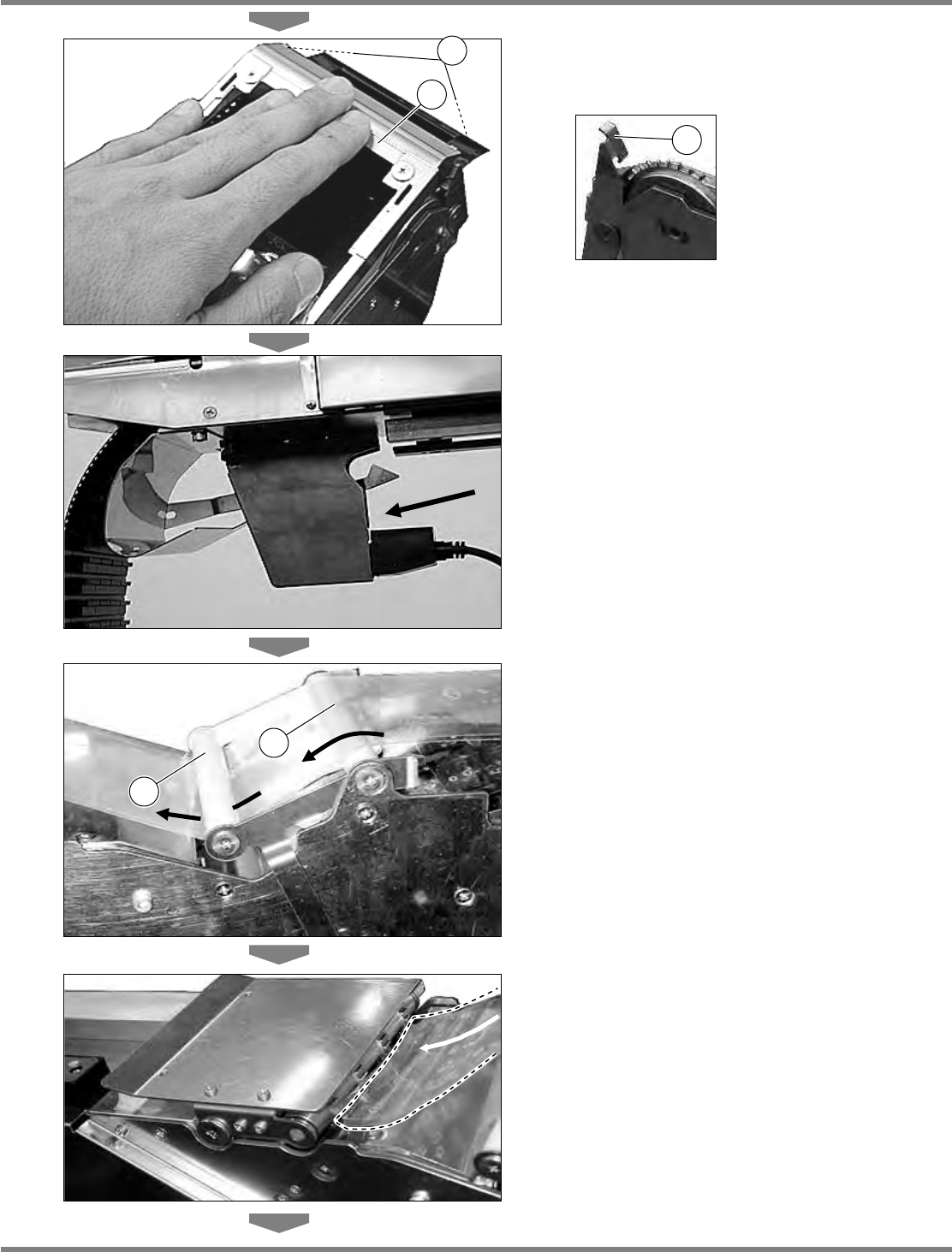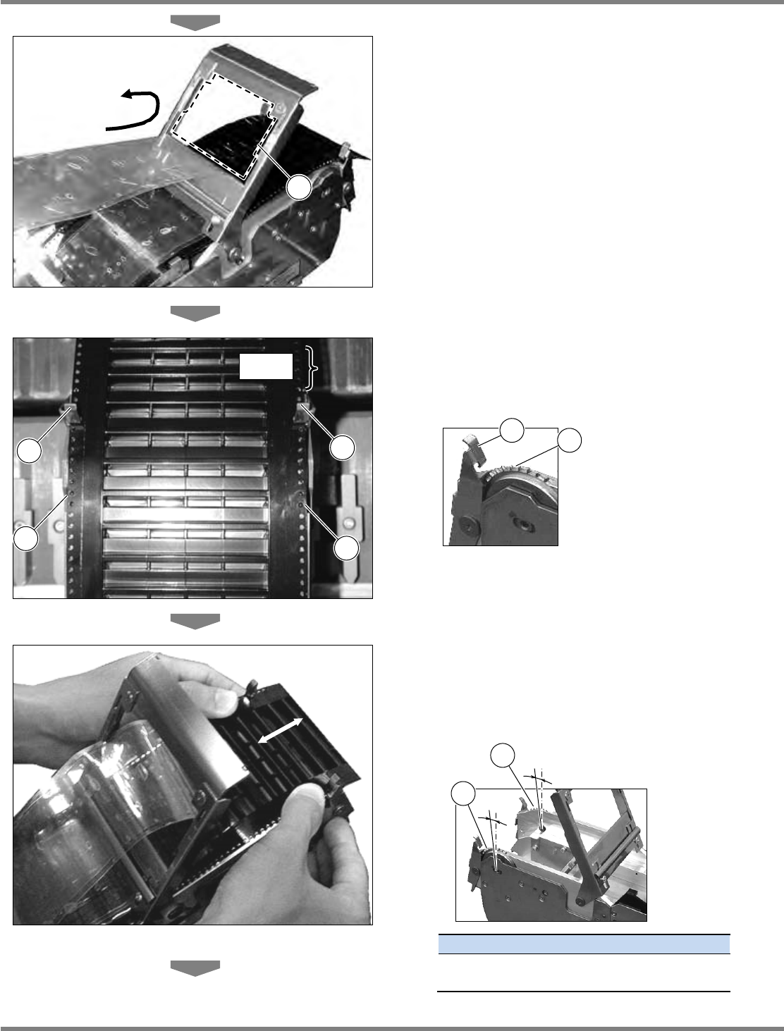 Intelligent Tape Feeder 操作手册 2.2 编带的设置 Page 2-22 INTF-C-OMB02-A01-12 4. 先将封盖带和载体编带通过盖的下面,然 后将封盖带通过编带压盖的吸着部 。 5. 使载体编带的进给孔与连轮齿的销 相 咬。 请使连轮齿的销多出在载体编带的上 面。 请使载体编带多出在插锁 尖端。 6. 将载体编带前后摇动,使左右的旋转角度 一致。 请在电源 OFF 的状态下…