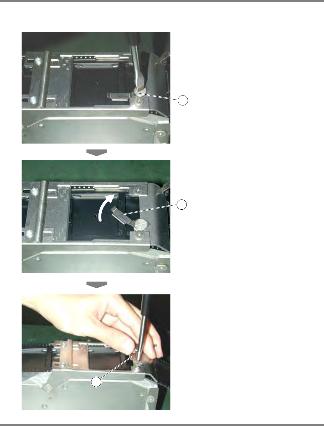 Intelligent Tape Feeder 操作手册 4.1 进给间距变更的调整 Page 4-10 INTF-C-OMB04-A01-04 2. 编带的中央部浮起来时的处理 将压紧编带臂 如上所示倾斜后固定,则可预防编带中 央部浮起来。 但, • 压紧编带臂的倾斜度应在与芯片袋 不重叠的范围内。 • 压紧编带臂与芯片袋重叠时,无法取 出芯片。 • 请在进行贴装动作之前搬送编带,确 认导杆是否挂到编带上。 如果导杆挂到编带,…