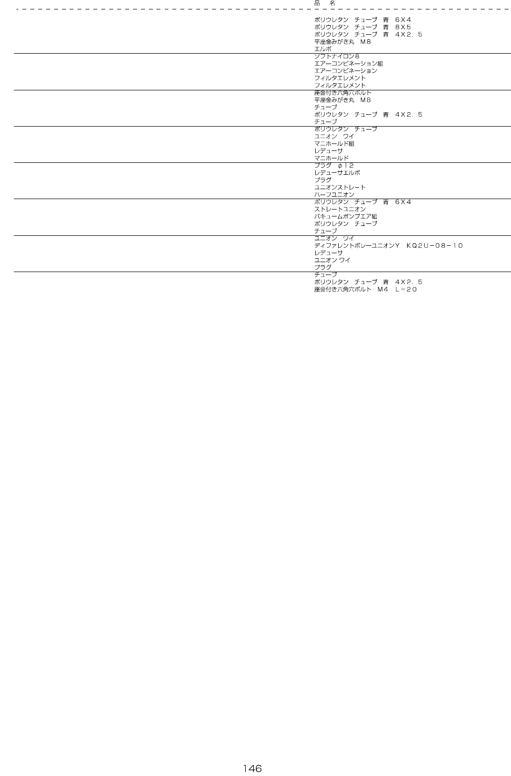 - - REF.NO NOTE PARTNO DESC RIPTION Qty 1 BT-0600400-EC URETHANETUBEB LUE6X4 12 2 BT-0800501-EA UR ETHANETUBEB LUE8X5 2.5 3 BT-0400251-EA UR ETHANETUBEB LUE4X2.5 3.05 4 WP-0841601-SC WASHER M…