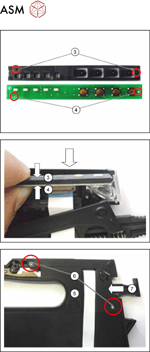 7 Repairs to SmartFeeder 8 mm X 7.14 Handle with control panel 124 Service Manual SIPLACE SmartFeeder 4 - 104 mm X 11/2017 ► Insert the control panel (3) with the marked pins into the marked holes (4) on the board. ► P…