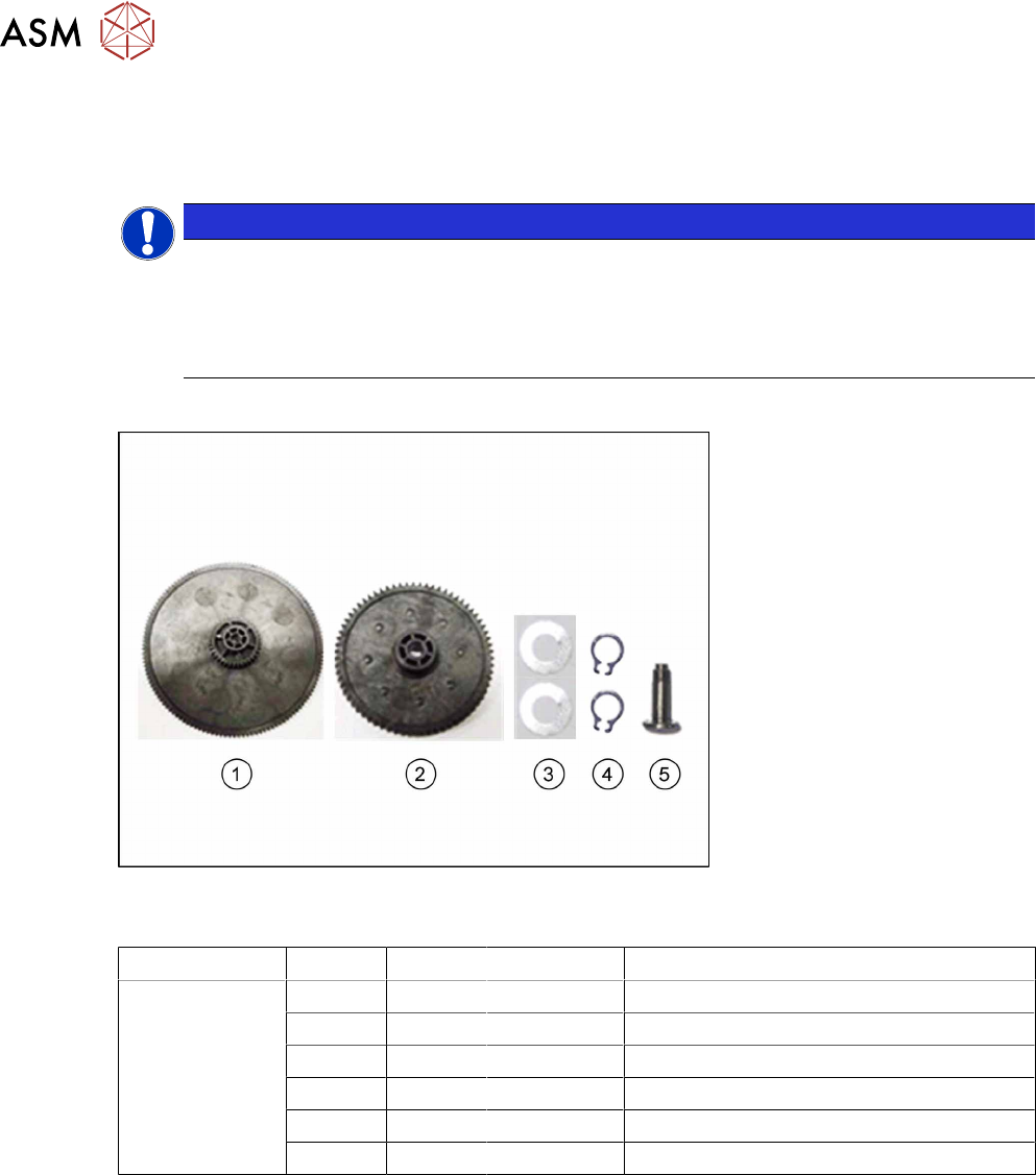 The spare parts provided in the gear set are listed in the following table: