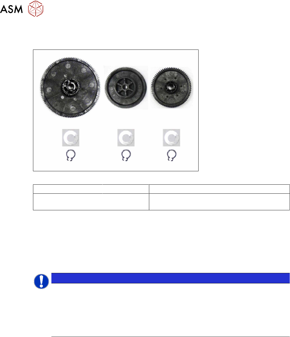 9 Repairs to SmartFeeder 12 mm X / 16 mm X 9.7 Drives and gears Service Manual SIPLACE SmartFeeder 4 - 104 mm X 11/2017 201 ► Fit gear stage1 with the smaller toothed wheel down onto the axle. (1) Make sure that the s…