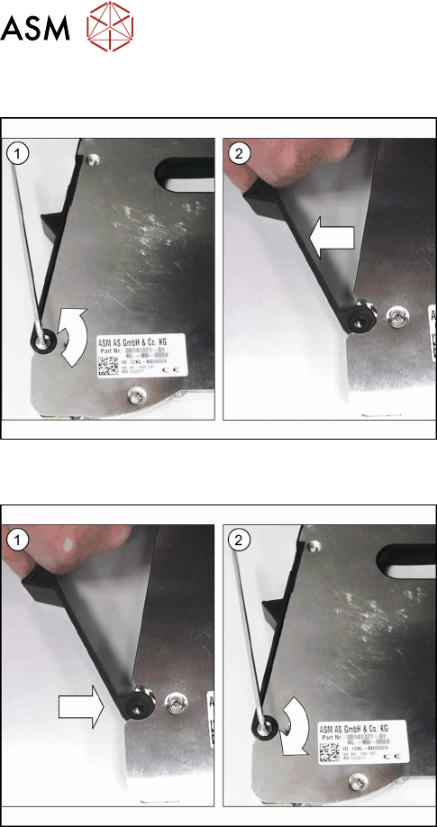 ► Remove the screwed axle on the flap(1). Use a