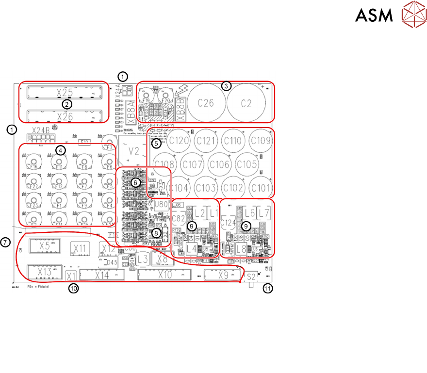 8 电源 8.4 保险分配板 FD:A1 概览 技术培训 SIPLACE TX系列 10/2016 209 8.4 保险分配板 FD:A1 概览 1. 至 CSB 单元的插头 5. 42V缓冲电容 9. 贴片头增强变频器(输入 42VDC 输出25.5VDC) 2. 低电压输入 6. 诊断单元 3. 缓冲电容器,160VDC 7. 输出电压接头 10. PE 连接 4. 低电压熔断阵列* 8. 诊断数据接头 11. 台式计算机电压开关 …