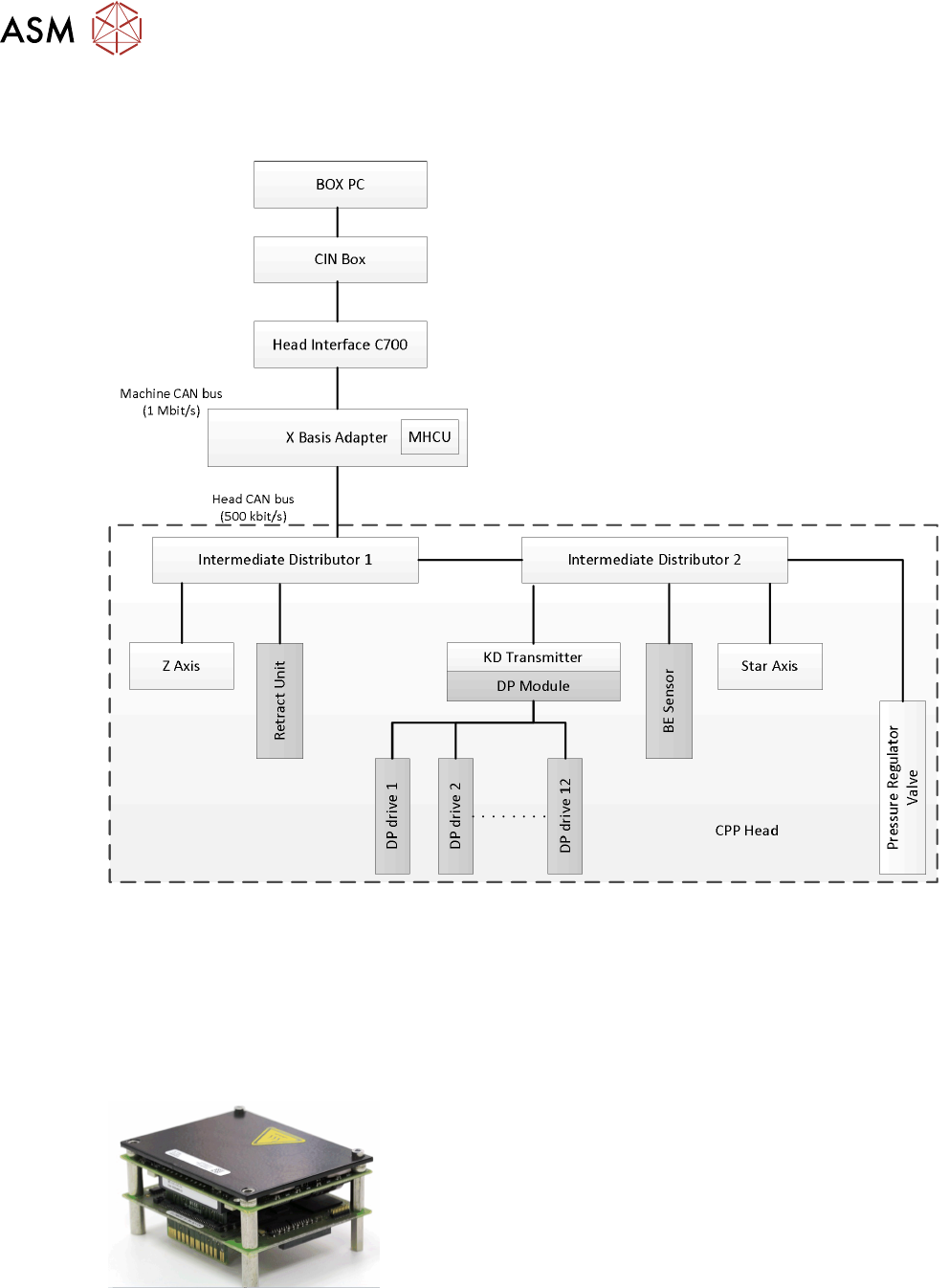 5 贴片头 5.1 CPP 贴片头 技术培训 SIPLACE TX系列 10/2016 73 MHCU 功能电源 该功能可为电气设备和 Z 轴提供 42V 的电压。 贴片头接口 (C700) 上的供电柜为 MHCU 提供 25 V 的电压。 所有必需的内部电压(+24V、+15V、-15V、+5V、+3.3V、+1.5V)均由悬臂上的贴片头接口生成。 此外,轴工作电压(星型轴 150 V/Z轴 42 V)由贴片机电源提供。 MHCU 功…