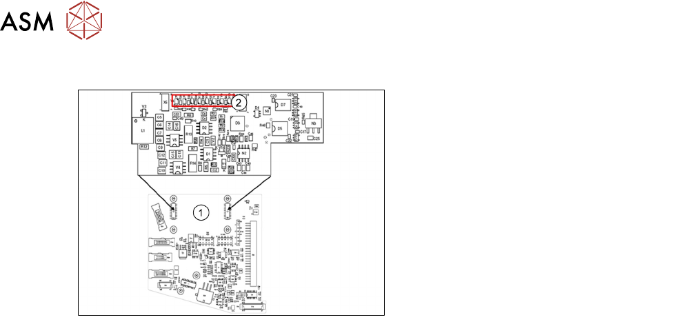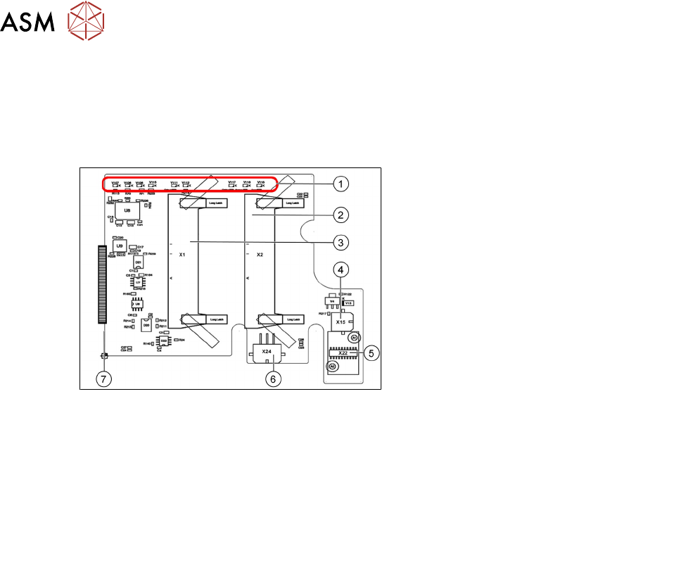 5 贴片头 5.1 CPP 贴片头 技术培训 SIPLACE TX系列 10/2016 75 中部分配器 2 X14、X16、X16B:CAN 总线的测试接头 X27、X28:FPGA 的测试接头 已用 X20、X26 或 X29! 1. KE 传感器控制板 X31、X32 连接器(05 版 CPP 贴片头) 2. 24V DP 切换 3. X30 中部分配器 1 的接头 4. X12 数字式压力控制阀 5. 开关 S1.1:CAN 测…