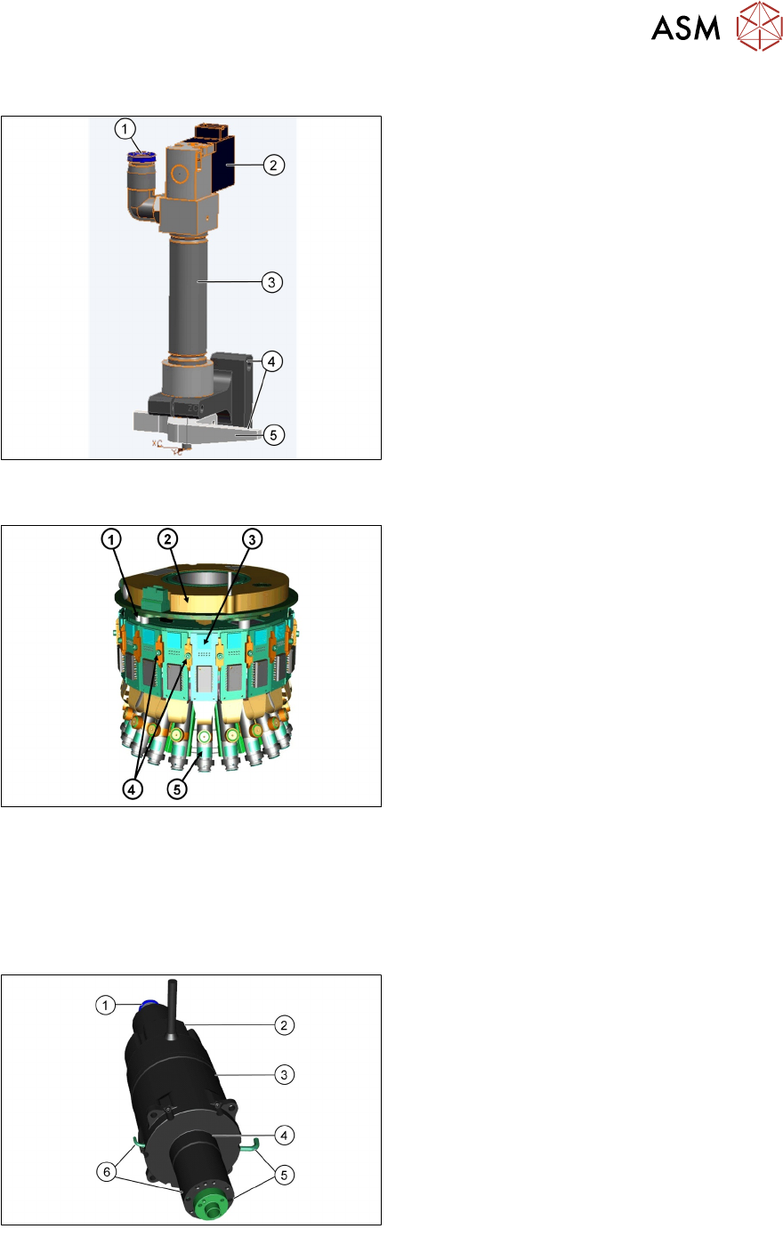 5 贴片头 5.2 C&P20 P/M2 贴片头 技术培训 SIPLACE TX系列 10/2016 97 5.2.2.4 收缩装置 1. 压缩空气连接 2. 电磁阀 3. 气缸 4. 收缩装置的安装 5. 移动 Z 轴的促动器 收缩装置功能 ● 收缩装置安装在 Z 轴上,它通过将 Z 轴向 上移至安全区的方法,负责保护 Z 轴在遇 到断电或贴片机关闭等意外事件时免受损坏 ● 收缩装置使用两颗螺钉固定,可在维修作业 期间轻松的更…