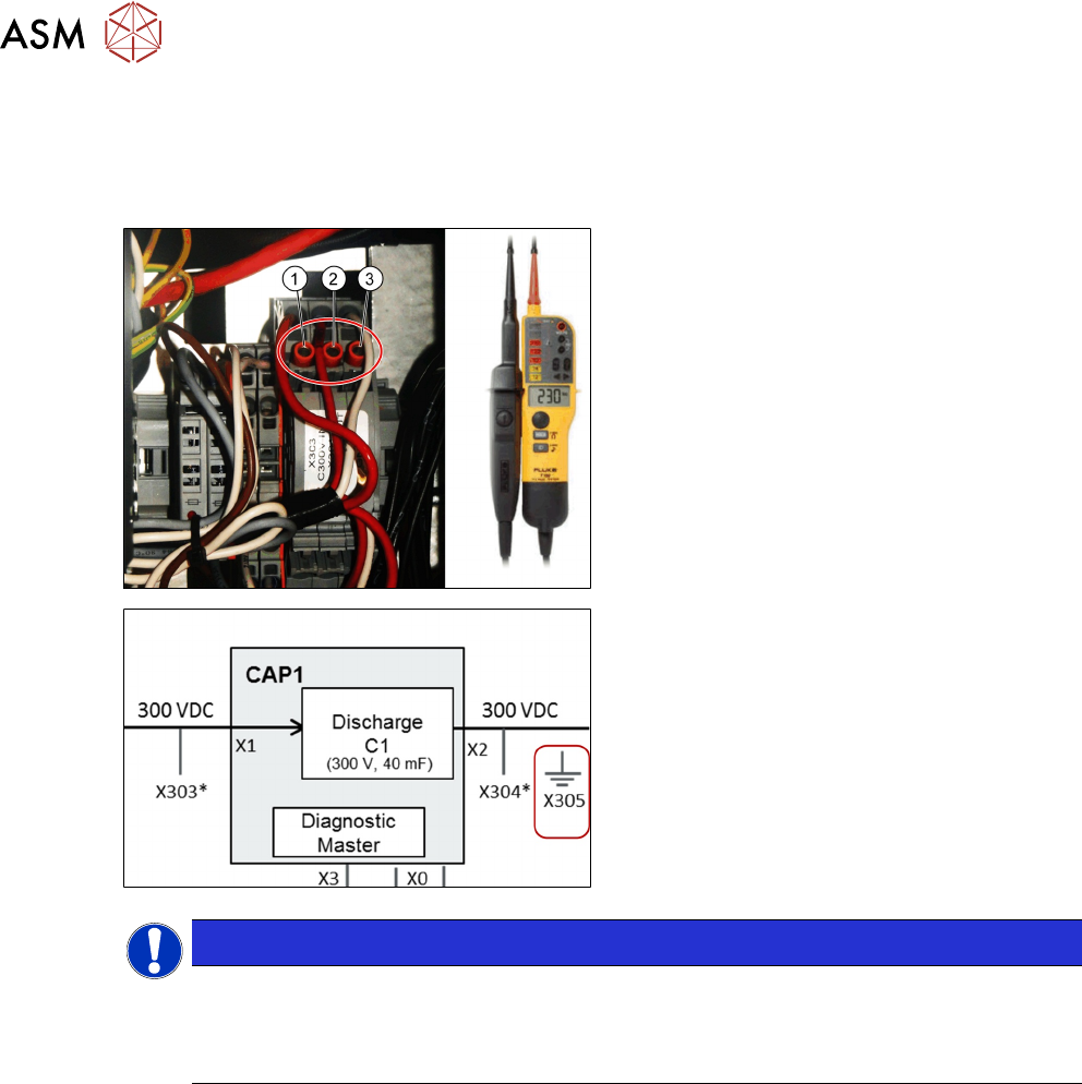 来自 CAP1(输出)的 300VDC 可以在 X304(300VDC)和 X305 (接地)之间测量。