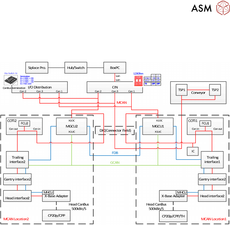 GCAN 总线负责悬臂控制单元 (MGCU) 和贴片头控制单元 (MHCU) (例如贴片头 CAN 诊断或
