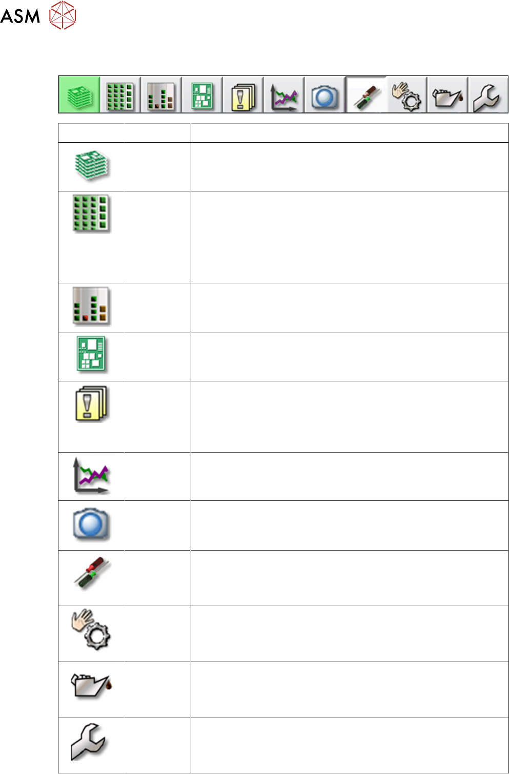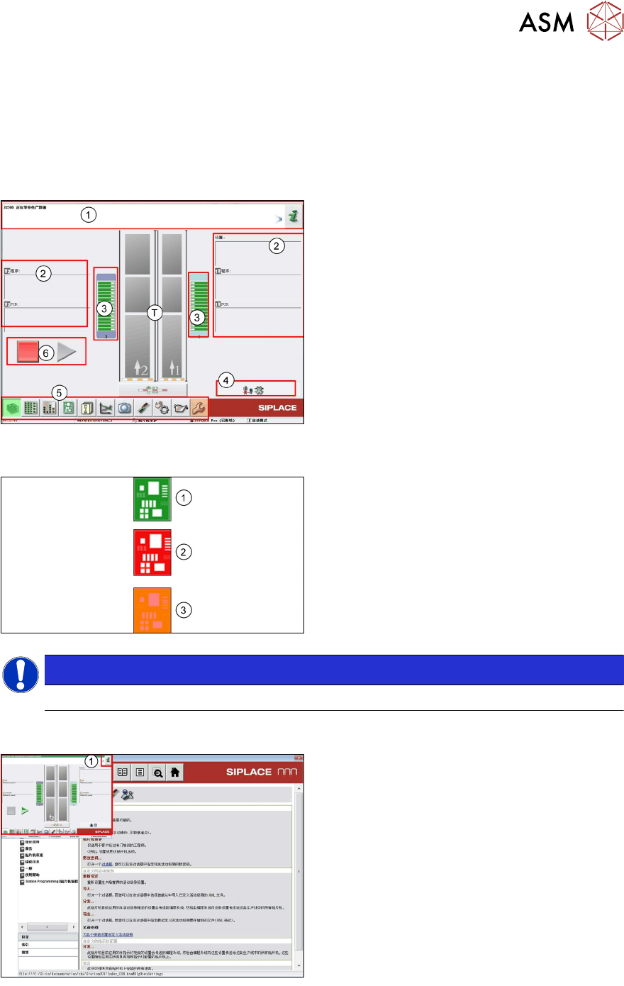 10 贴片机软件概览 10.1 贴片机软件启动页面概览 技术培训 SIPLACE TX系列 10/2016 241 10 贴片机软件概览 10.1 贴片机软件启动页面概览 工作站 GUI 总览 T 型贴片机传送导轨 1. 信息/动作栏,贴片机状态 2. 传板1和2的产品和设置信息 3. 供料器板状态 4. 贴片机选项和设置信息 5. 贴片机主要图标 6. Start/Stop(启动/停止)按钮 图标颜色含义 1. 图标呈绿色表示贴片机正…
