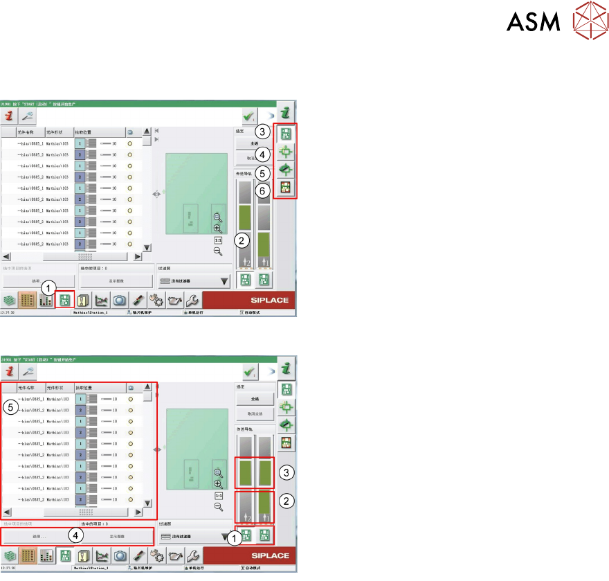 10 贴片机软件概览 10.5 贴片机设置和选项概览 246 技术培训 SIPLACE TX系列 10/2016 10.5 贴片机设置和选项概览 1. 贴片机设置:控制模式、自动压缩空气控 制、关机、Bug 报告 2. 用户设置/权限 3. 机器选项设置 4. 软件设置 5. GUI设置 6. 连接客户端摘要 7. 显示生产线其他贴片机信息 1. 在这里,可以配置贴片机在特定事件中的行 为。 2. 可以屏蔽贴片机的某些功能(测试) 3.…