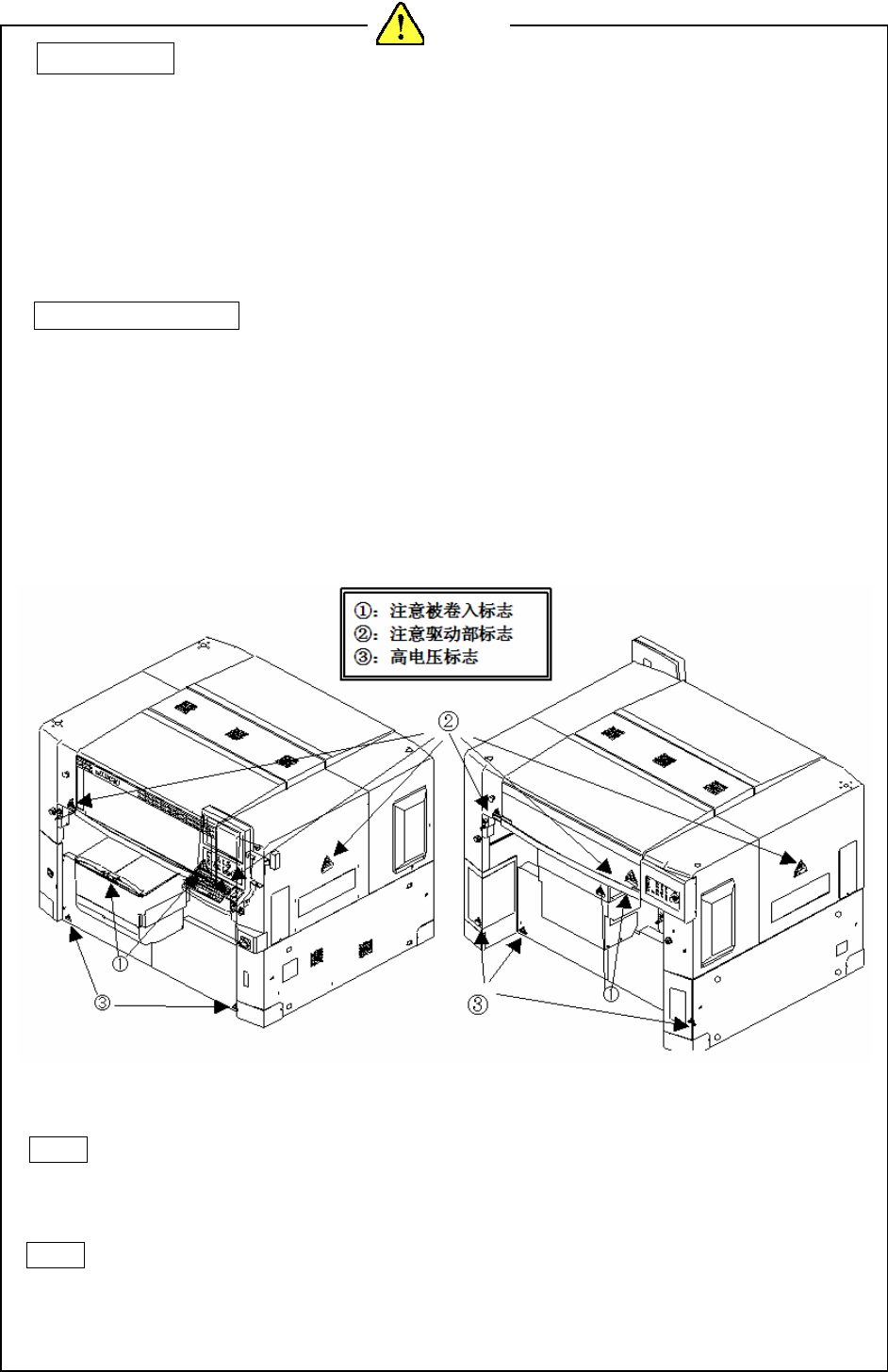 3. 贴在机器上的警告标识,请正确粘贴,使之醒目可见。若发生剥落或污损,请与本公司联系,换成