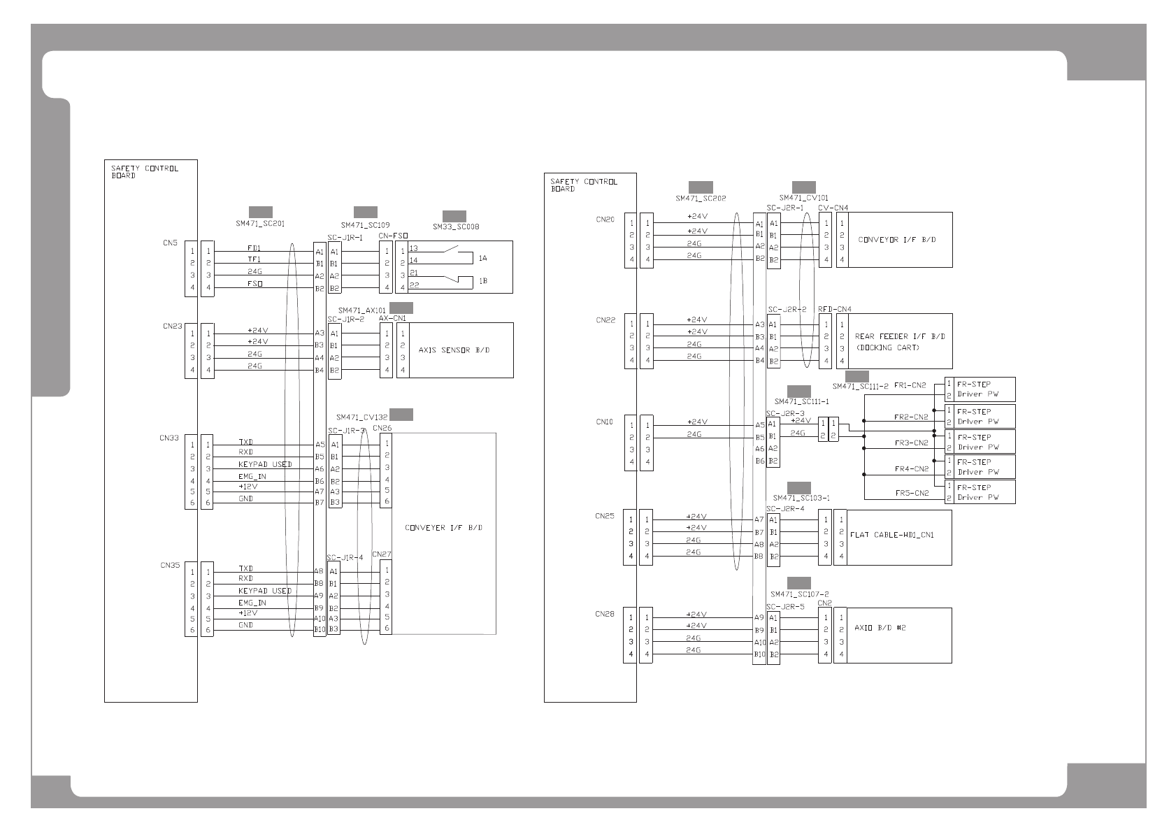 Page SAMSUNG TECHWIN 173 SM471 S afety Control Board Interface (1/4) NO. Lev . P ART NO. P ART NAME Q'TY Old No. Supply Supply L T Reference 1 AM03-0055 06A CABLE ASSY -GENERAL_PW_RELA Y 1 SM471-PW03 2 2 AM03-0055 0…