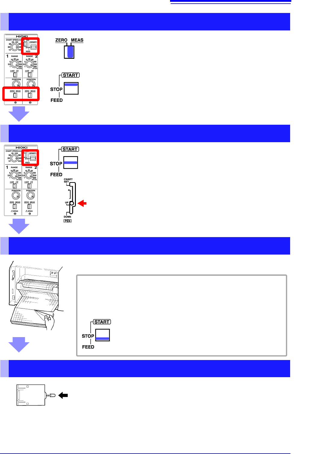 Paper will be fed through the instrument, and recording will start.