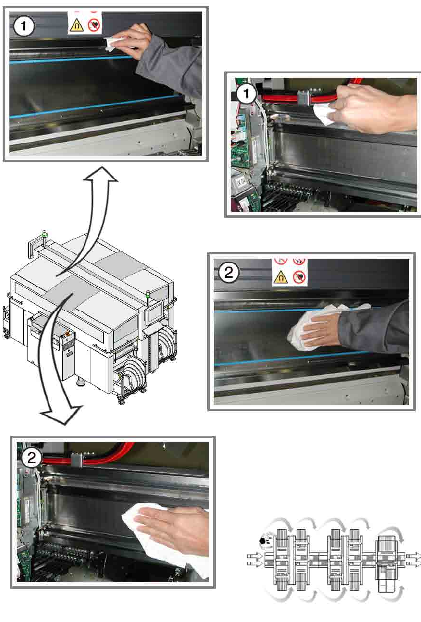 (1) 利用鏡頭布清潔 DP 馬達掃描裝置的玻璃盤。