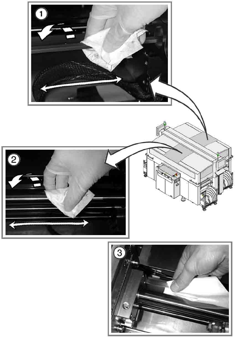 (3) 用沾有無水乙醇的無棉絮布料清潔寬度可調節的夾緊裝置固定條。