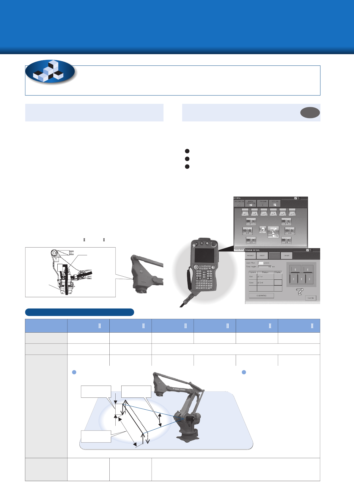 借助更优化码垛用途的性能、构造、专用工具,提高生产力。