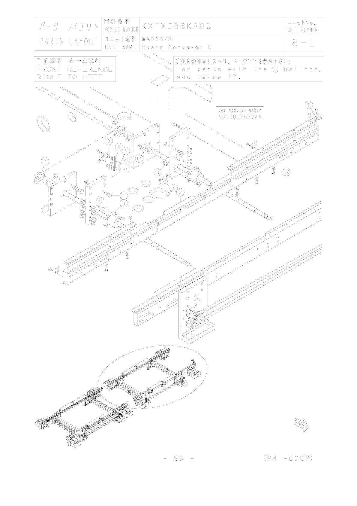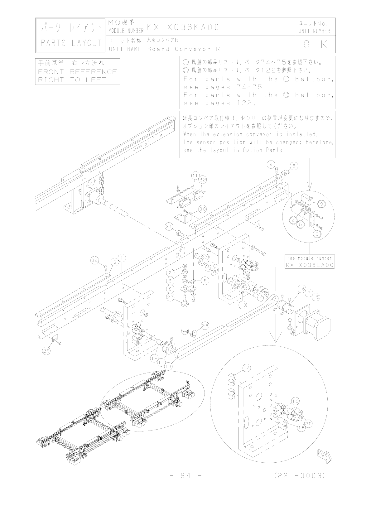 1 2 3 4 5 6 7 8 9 10 11 12 13 14 15 16 17 18 19 20 21 22 23 24 25 26 27 28 29 30 NO 番号 MO機番 ユニット名称 基板コンベアR UNIT NAME PART NUMBER 品番 部品名 型式 数量 ランク 備考 Board Conveyor R PART LIST MODULE NUMBER パーツリスト KXFX036KA00 8-K UNIT NU…