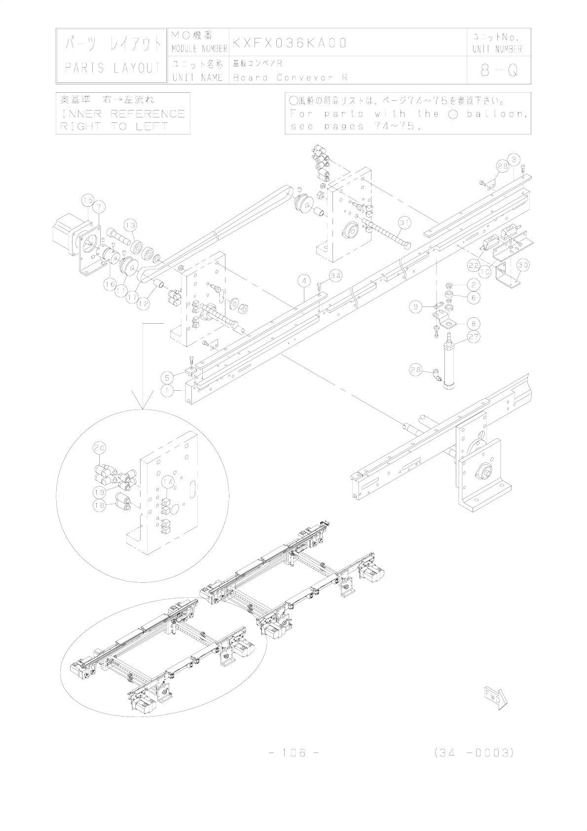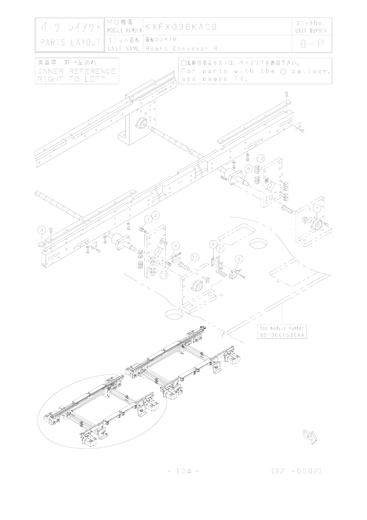 1 2 3 4 5 6 7 8 9 10 11 12 13 14 15 16 17 18 19 20 21 22 23 24 25 26 27 28 29 30 NO 番号 MO機番 ユニット名称 基板コンベアR UNIT NAME PART NUMBER 品番 部品名 型式 数量 ランク 備考 Board Conveyor R PART LIST MODULE NUMBER パーツリスト KXFX036KA00 8-P UNIT NU…