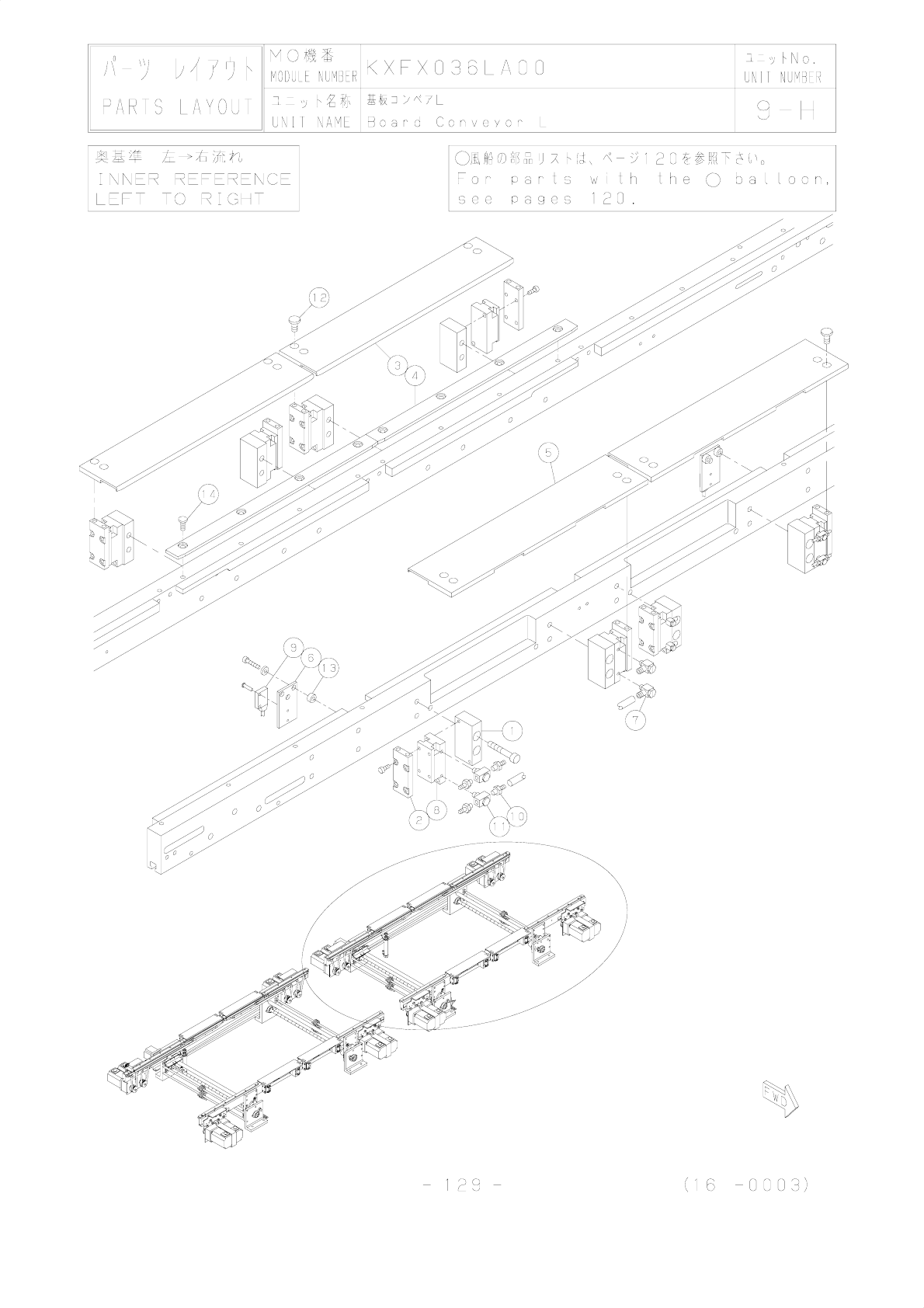 1 2 3 4 5 6 7 8 9 10 11 12 13 14 15 16 17 18 19 20 21 22 23 24 25 26 27 28 29 30 NO 番号 MO機番 ユニット名称 基板コンベアL UNIT NAME PART NUMBER 品番 部品名 型式 数量 ランク 備考 Board Conveyor L PART LIST MODULE NUMBER パーツリスト KXFX036LA00 9-H UNIT NU…